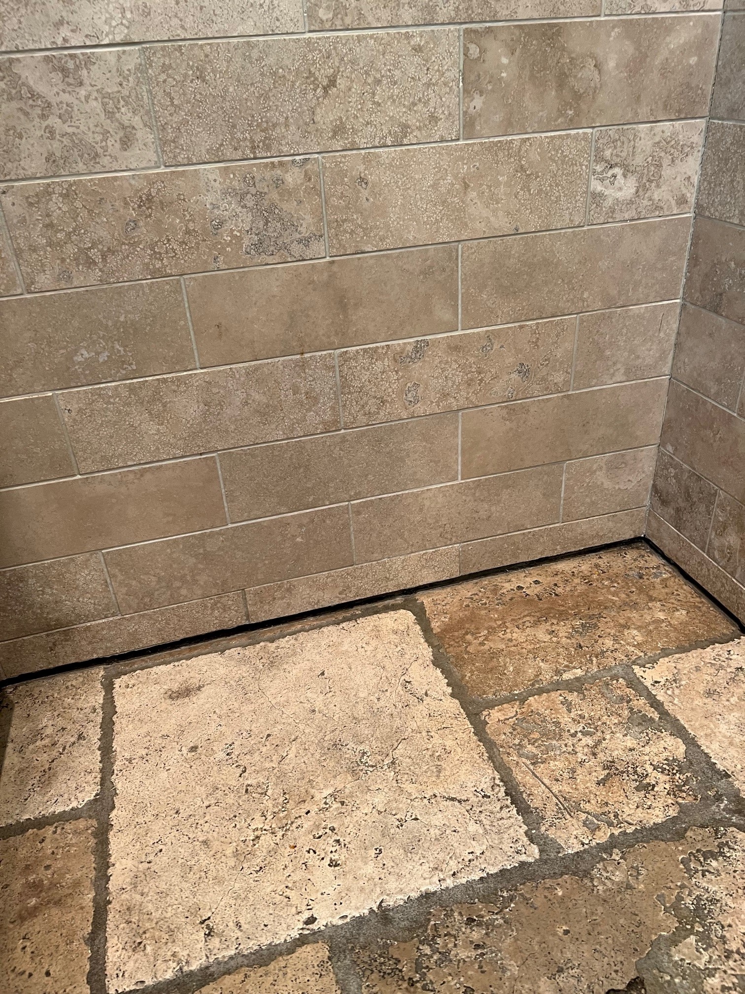 Turning into the kitchen, one can see evidence of the sill compression that is mentioned on the Priorities and Goals page. Please bear in mind that the kitchen was completely renovated about 20 years ago; already, there is a gap of over 1/2″ between the tile floor and the tile wall, because of that compression and resultant settling! Gaps are found throughout the first floor, but this is one of the more notable examples.