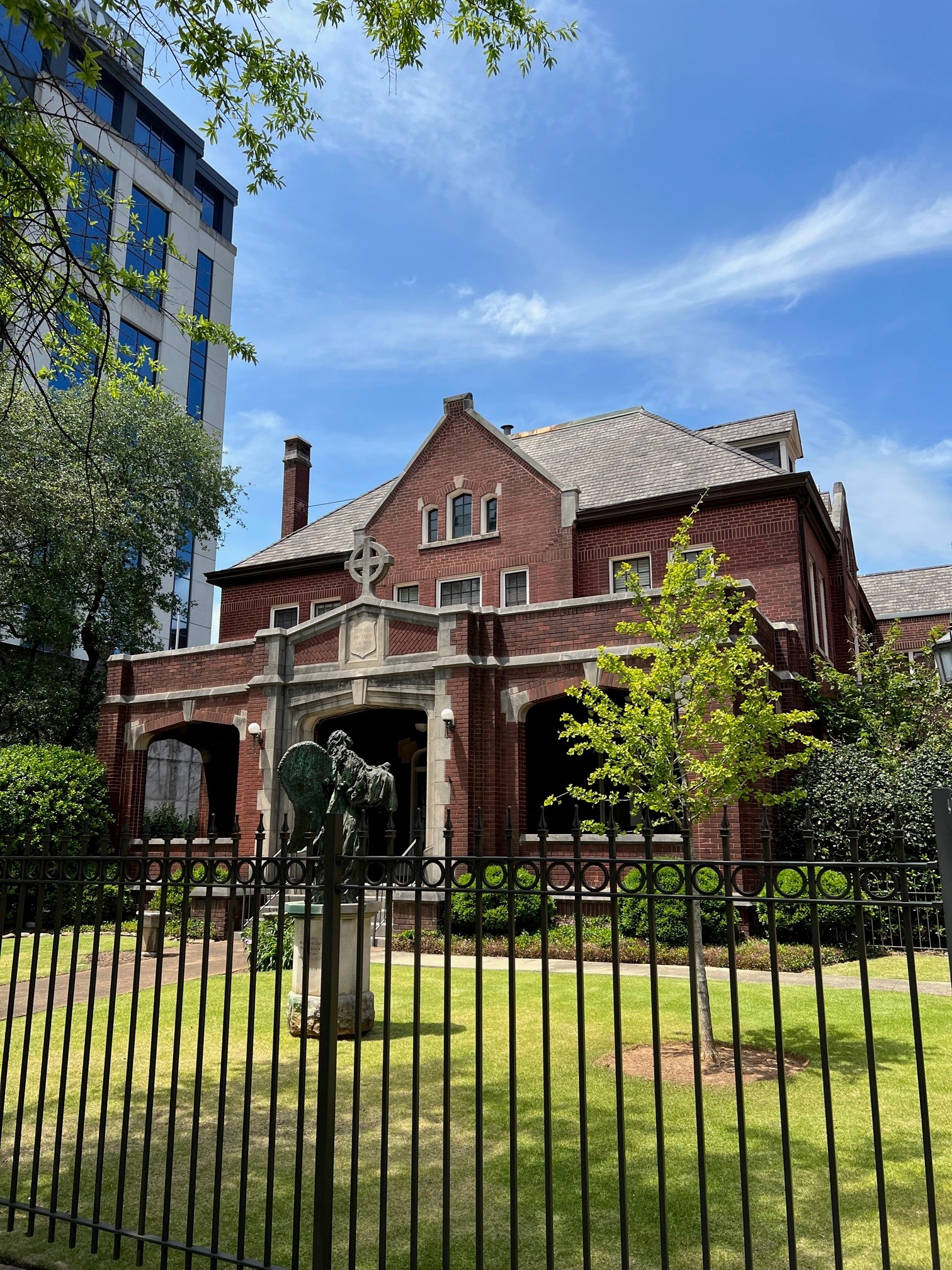 The Rectory was built in 1922 in a red brick style that is complementary with the other buildings on the Cathedral campus. It has three floors and 7,161 occupiable square feet. There is no basement, but a shallow crawl space underneath that is accessible through exterior portals. It is the last free-standing continuously-occupied house in Downtown Birmingham.